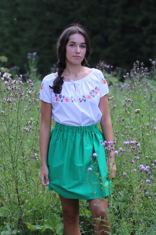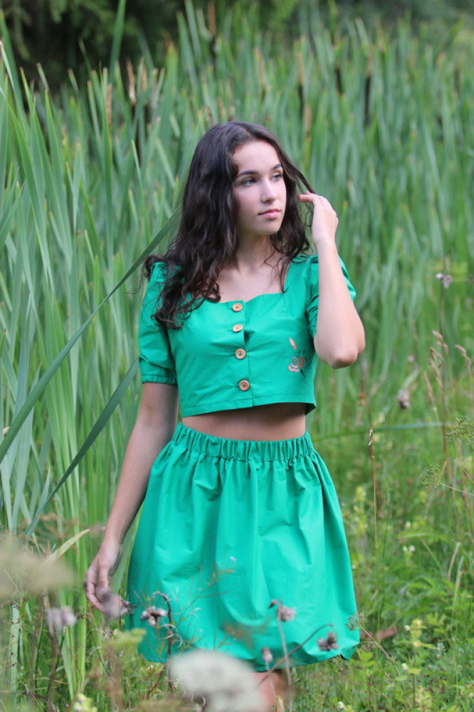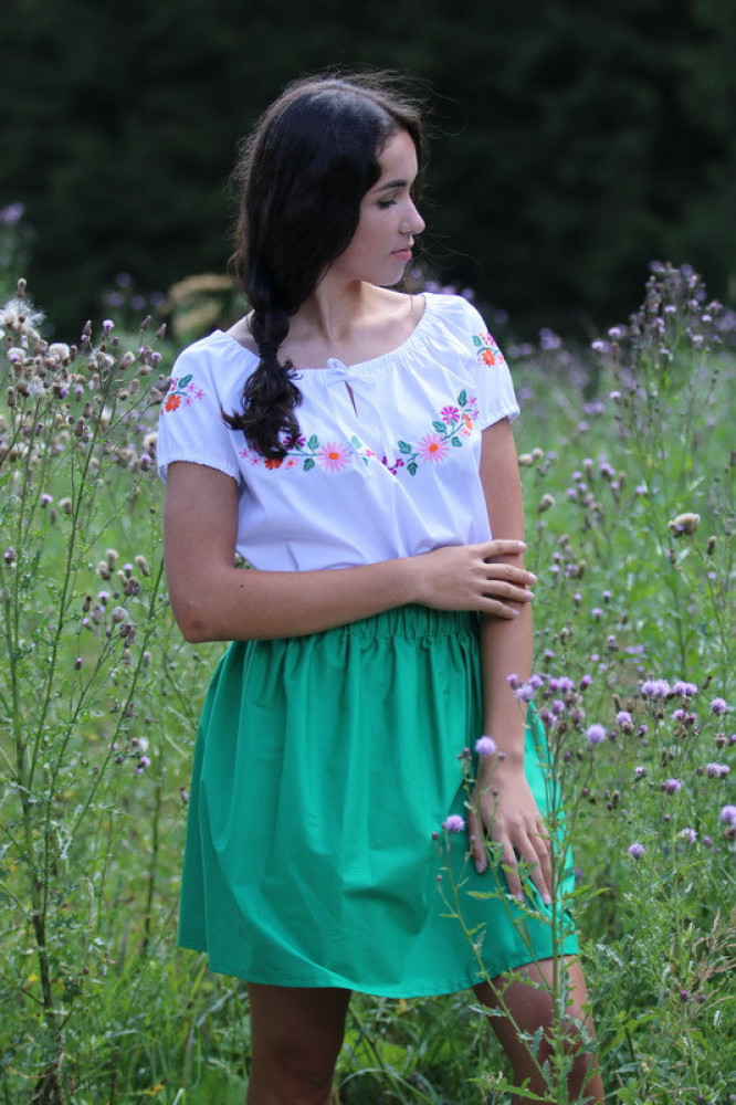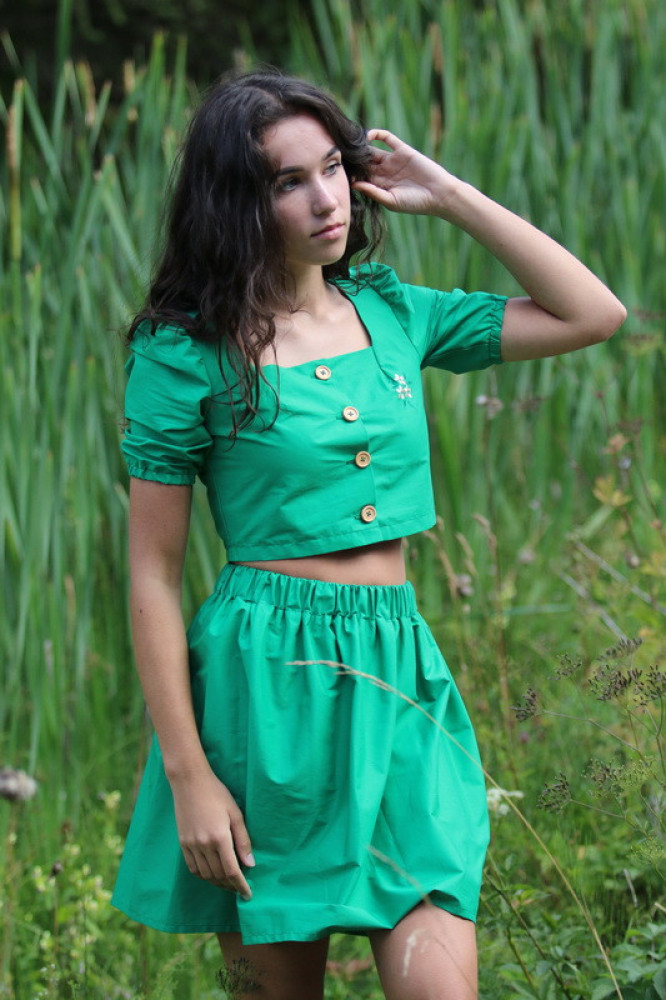 Krátka jemná suknička na gumičku na teplé letné dni. Pôsobí elegantne, je vhodná na rôzne spoločenské akcie k blúzke alebo košieľke. Je priedušná, ľahká a voľná. Kvalitne vypracovaný kúsok je príjemný, pri nosení pohodlný a na dotyk jemný.