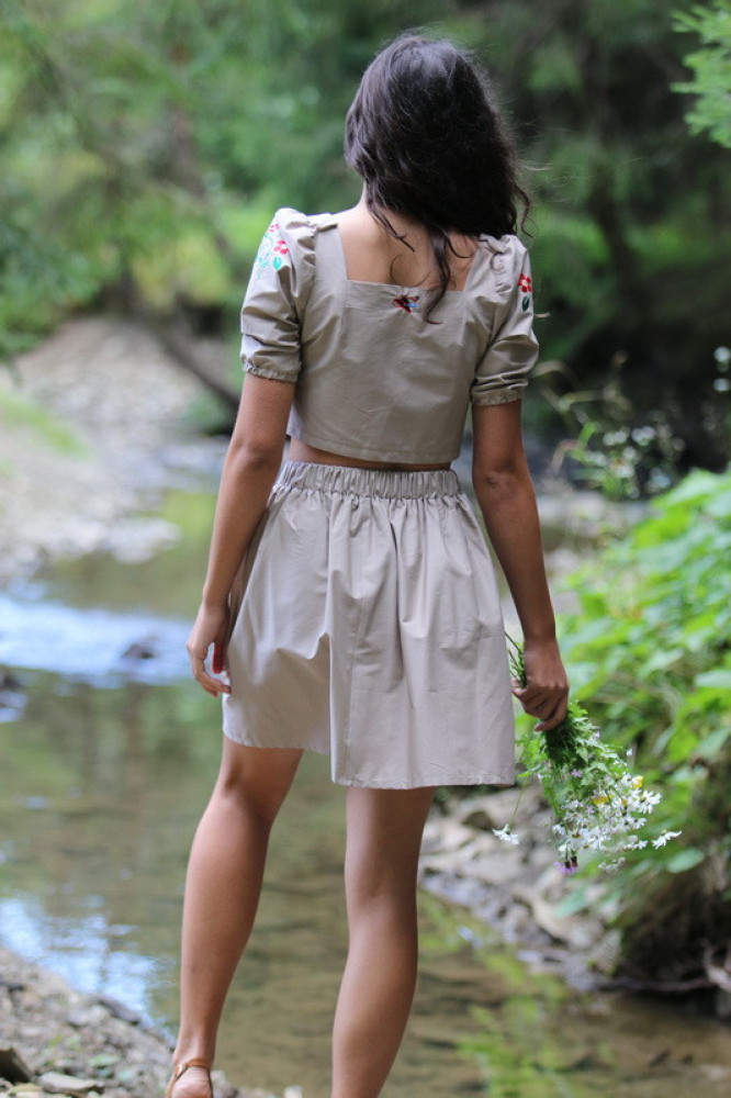 Vyšívaný bavlnený crop top Krojové.sk so zapínaním na drevené gombičky s balónikovými rukávmi. Pôsobí elegantne a sviežo, je vhodný na rôzne spoločenské akcie alebo na bežné nosenie k nohaviciam či k sukni. Kvalitne vypracovaný kúsok je veľmi príjemný, pri nosení pohodlný, vzdušný a na dotyk jemný.