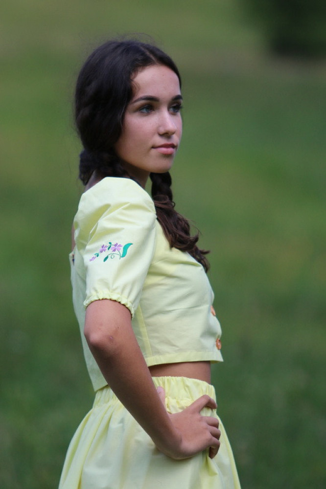 Vyšívaný bavlnený crop top so zapínaním na drevené gombičky s balónikovými rukávmi. Pôsobí elegantne a sviežo, je vhodný na rôzne spoločenské akcie alebo na bežné nosenie k nohaviciam či k sukni. Kvalitne vypracovaný kúsok je veľmi príjemný, pri nosení pohodlný, vzdušný a na dotyk jemný.