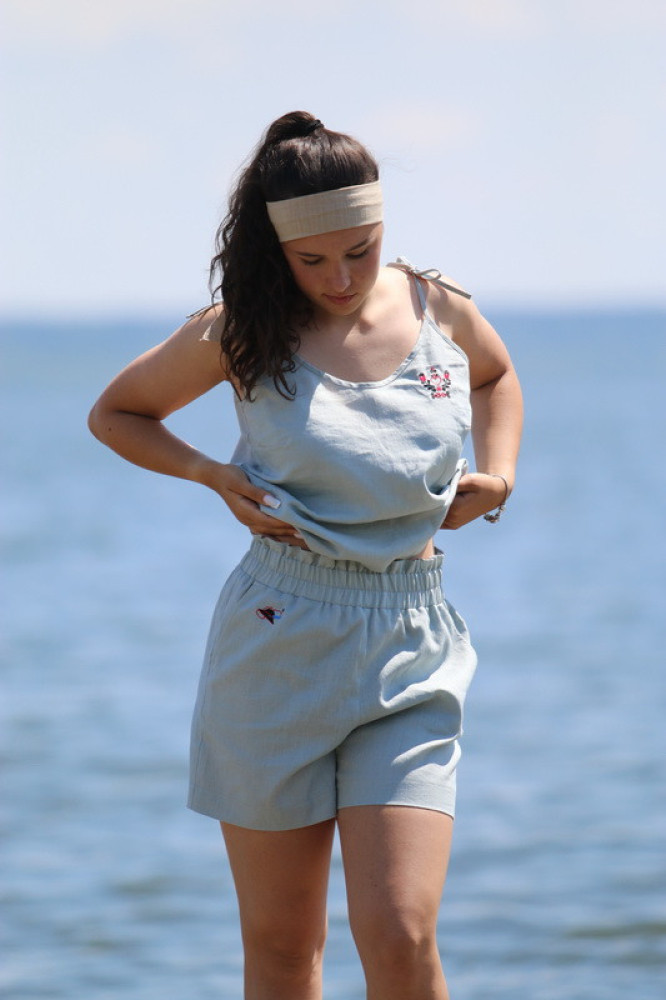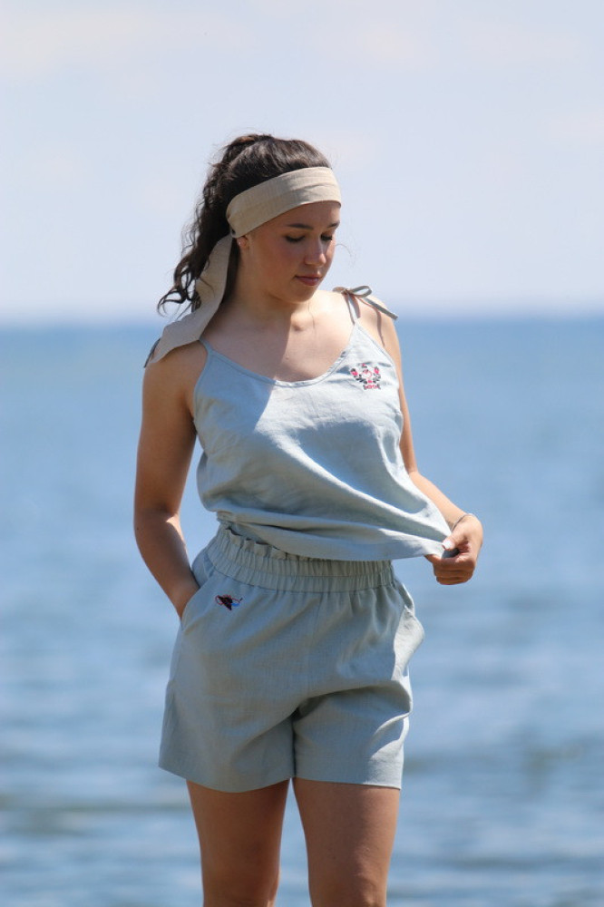 Dámske trendy ľanové tielko na tenké uväzovacie ramienka s V-výstrihom. Veľmi pohodlné, vzdušné, poskytuje komfort počas horúcich letných dní. Je možné ho kombinovať s kraťasmi, nohavicami či doplniť ho elegantným ľanovým sačkom z našej dielne.