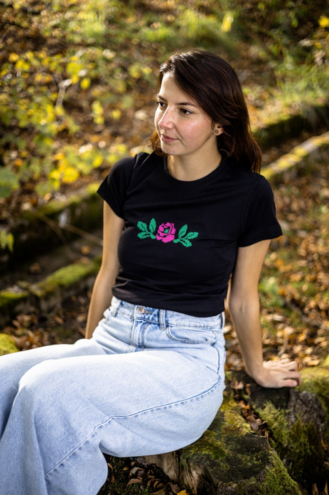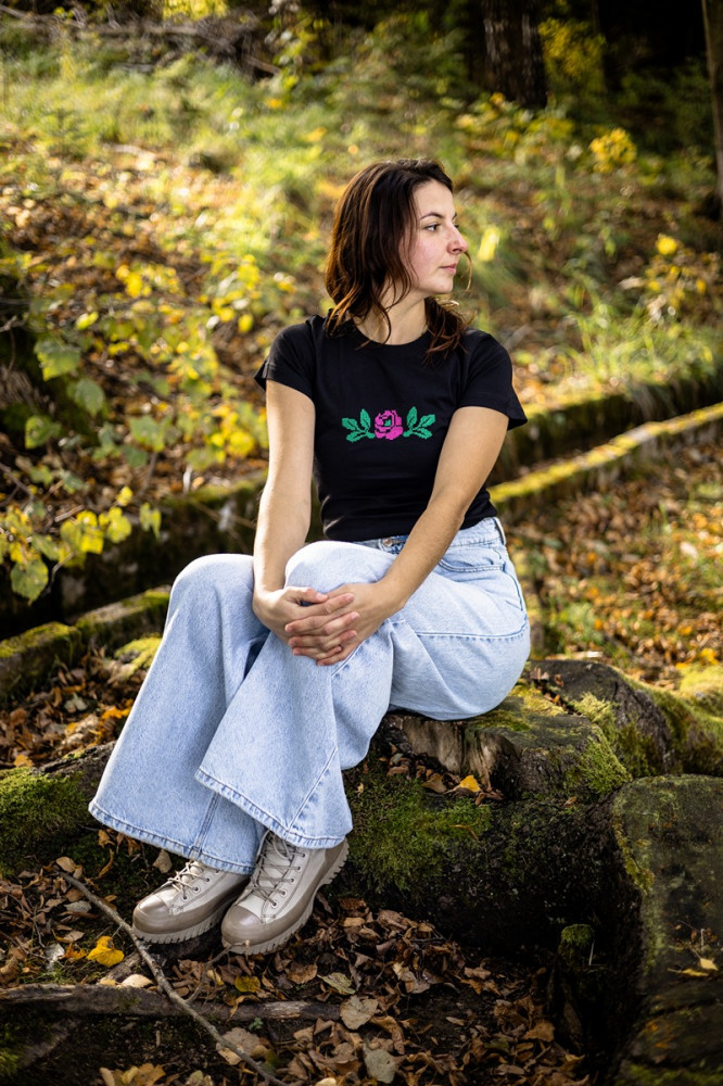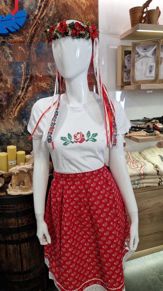 Dámske tričko s krátkym rukávom s krížikovou výšivkou z obce Pohorelá (Horehronie).