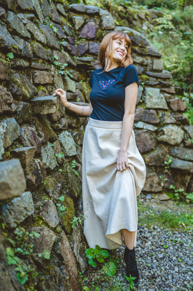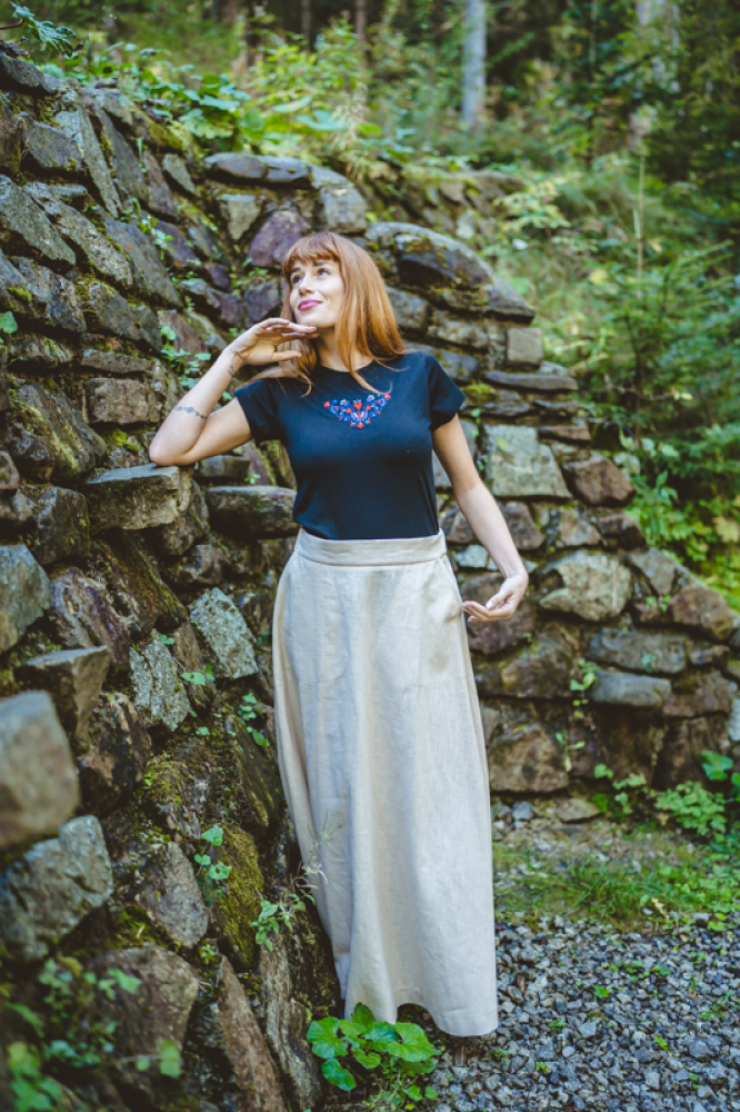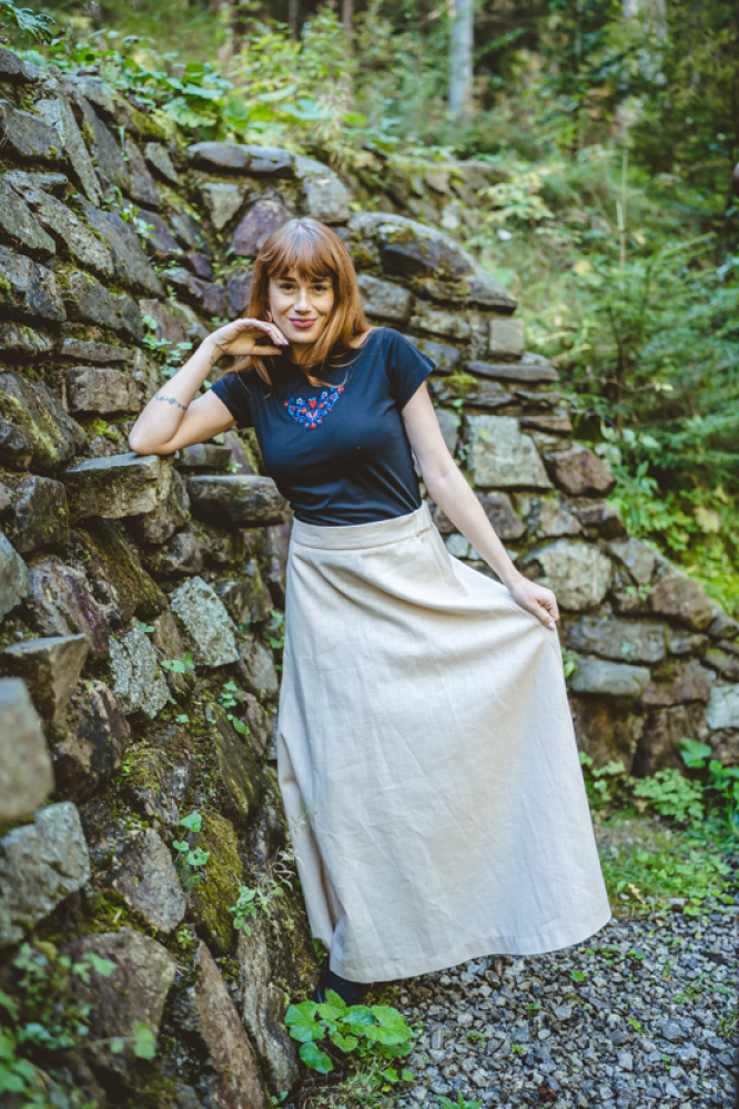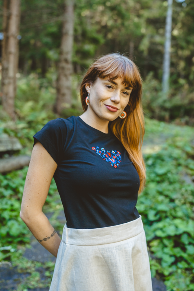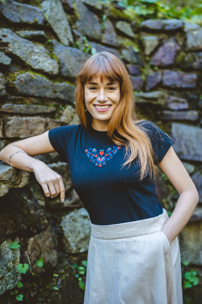 Dámske tričko s krátkym rukávom a jedinečnou výšivkou, v ktorom určite zažiarite. Je vyrobené zo 100% bavlny a pekne zvýrazní postavu. Využijete ho nielen počas horúcich letných dní ale i v chladnejšom počasí napríklad v kombinácii s elegantným sačkom z našej dielne. Je vhodné ako originálny darček, ktorý poteší nejednu ženu.