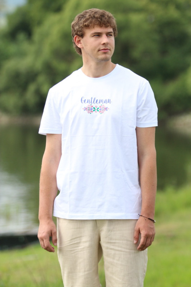 Pánske vyšívané tričko GENTLEMAN biele