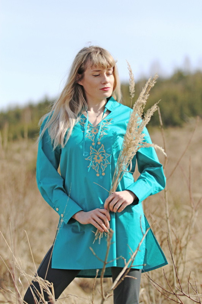 Vyšívaná tunika, veľmi pohodlná a príjemná k pokožke, vhodná pre rôzne typy postáv.