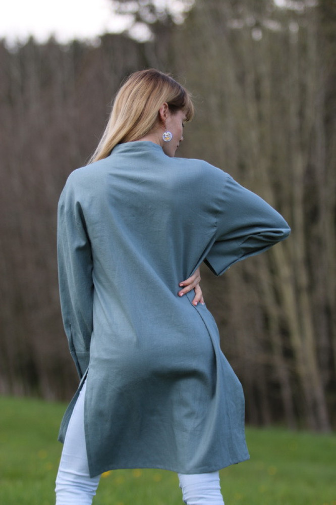 Jej dlhý rukáv je ukončený manžetou s dvoma gombíkmi, po bokoch na obidvoch stranách zdobia tuniku vysoké elegantne rozparky. Vďaka svojej kombinovateľnosti si ju určite zamilujete.