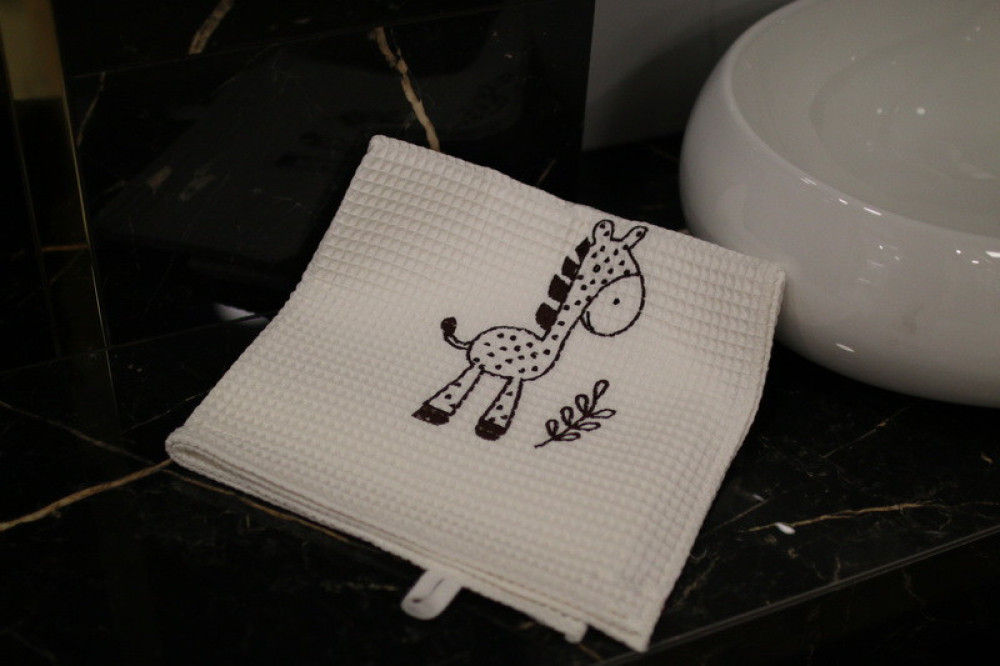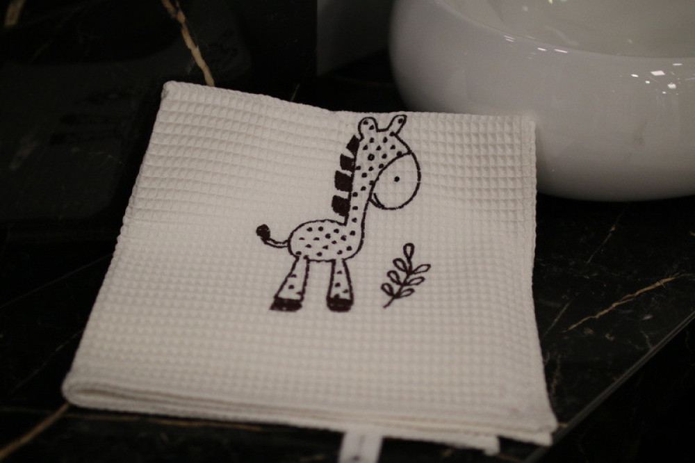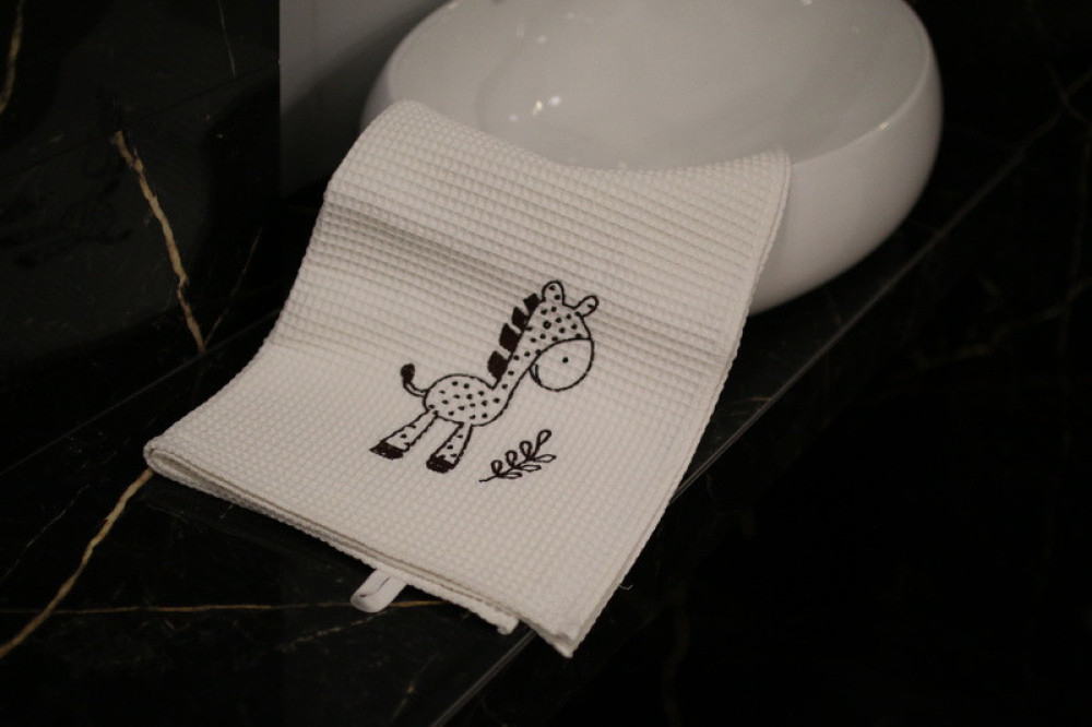 Wafle bavlnený uterák s detským motívom veľmi dobre saje vlhkosť. Ozdobený jemnou čipkou s hravou detskou výšivkou poteší a zaujme každé dieťa. Je to správna voľba na obdarovanie vášho blízkeho do krstu či k sviatku. Uterák pôsobí na pohľad aj ako príjemný doplnok do vášho domova. Na dotyk je veľmi jemný, šetrný k pokožke. Je možné ho kombinovať s detskými osuškami.