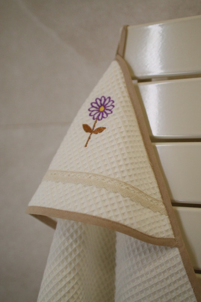 Wafle bavlnená osuška s detským motívom veľmi dobre saje vlhkosť. Ozdobená jemnou čipkou s hravou detskou výšivkou poteší a zaujme každé dieťa. Je to správna voľba na obdarovanie vášho blízkeho ku krstu či k sviatku. Osuška pôsobí na pohľad aj ako príjemný doplnok do vášho  domova. Na dotyk je veľmi jemná, šetrná k pokožke. Je možné ju kombinovať s detskými uterákmi.