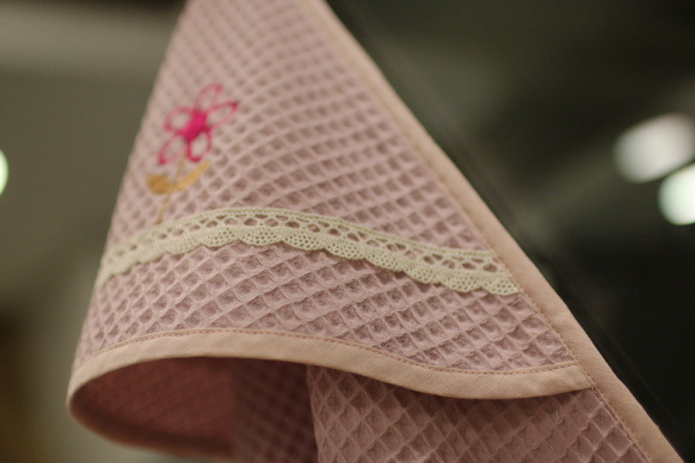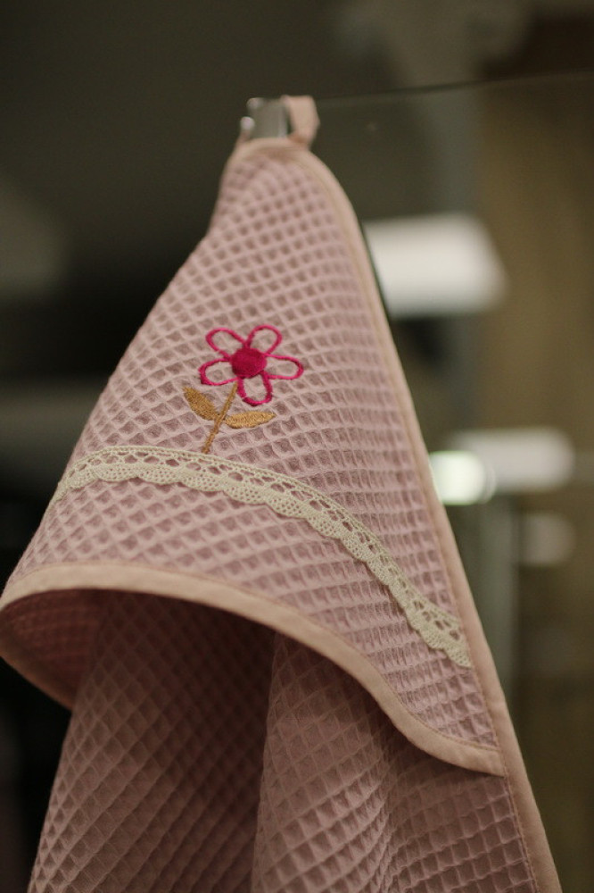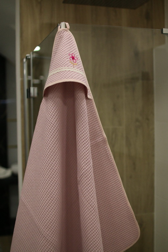 Wafle bavlnená osuška s detským motívom veľmi dobre saje vlhkosť. Ozdobená jemnou čipkou s hravou detskou výšivkou poteší a zaujme každé dieťa. Je to správna voľba na obdarovanie vášho blízkeho ku krstu či k sviatku. Osuška pôsobí na pohľad aj ako príjemný doplnok do vášho  domova. Na dotyk je veľmi jemná, šetrná k pokožke. Je možné ju kombinovať s detskými uterákmi.