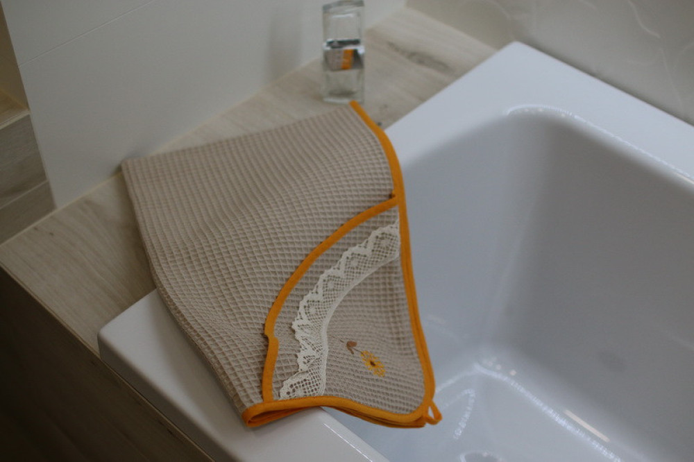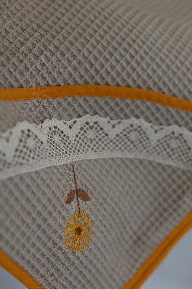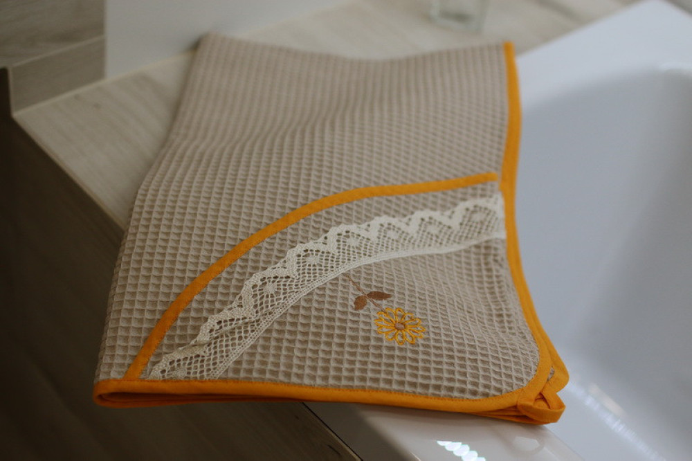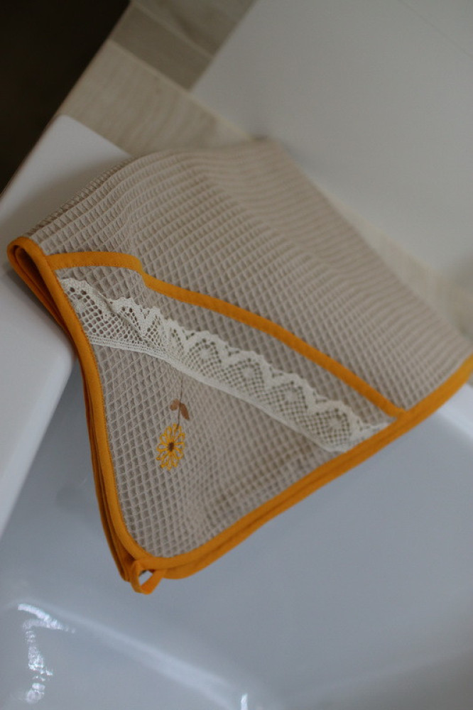 Wafle bavlnená osuška s detským motívom veľmi dobre saje vlhkosť. Ozdobená jemnou čipkou s hravou detskou výšivkou poteší a zaujme každé dieťa. Je to správna voľba na obdarovanie vášho blízkeho ku krstu či k sviatku. Osuška pôsobí na pohľad aj ako príjemný doplnok do vášho  domova. Na dotyk je veľmi jemná, šetrná k pokožke. Je možné ju kombinovať s detskými uterákmi.