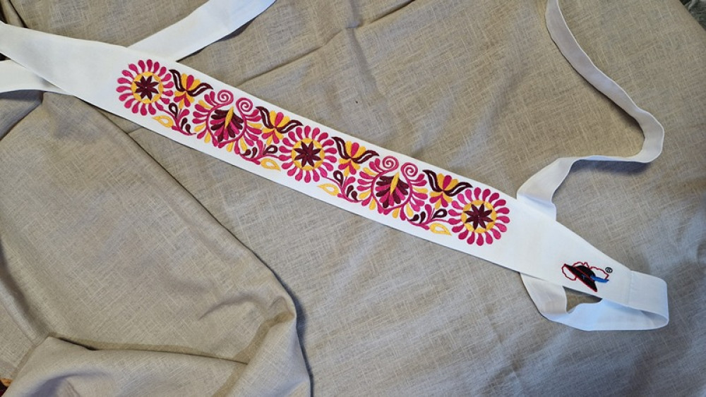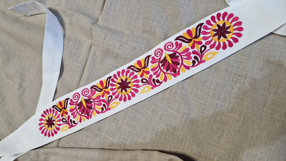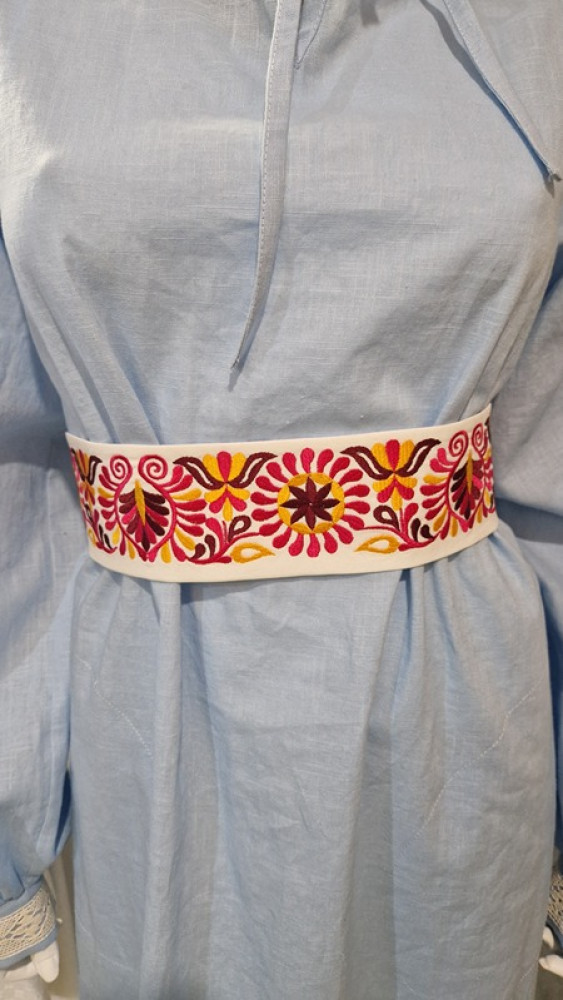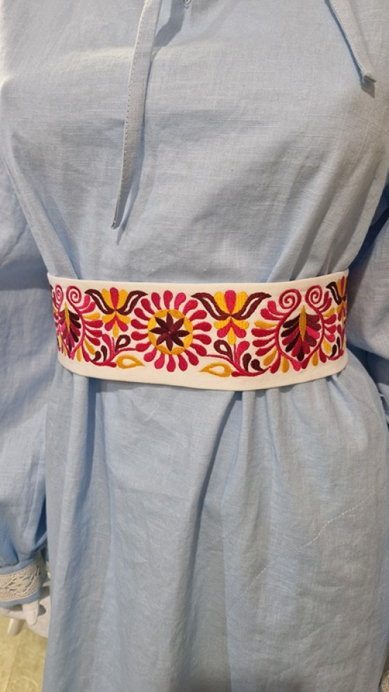 Vyšívaný opasok na viazanie mašle, doplnok, ktorý nádherne oživí všedný kúsok a dodá mu jedinečnosť. Vhodný do spoločnosti, na podujatia či akcie. Pôsobí elegantne. Krásne obopne pás a decentne zvýrazní jemné krivky.