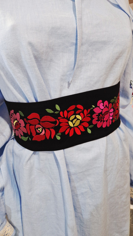 Vyšívaný opasok na viazanie mašle, doplnok, ktorý nádherne oživí všedný kúsok a dodá mu jedinečnosť. Vhodný do spoločnosti, na podujatia či akcie. Pôsobí elegantne. Krásne obopne pás a decentne zvýrazní jemné krivky.