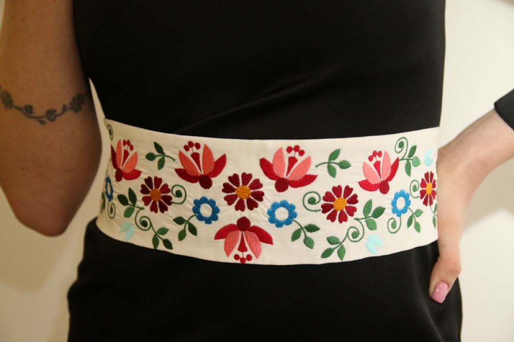 Vyšívaný opasok na viazanie mašle, doplnok, ktorý nádherne oživí všedný kúsok a dodá mu jedinečnosť. Vhodný do spoločnosti, na podujatia či akcie. Pôsobí elegantne. Krásne obopne pás a decentne zvýrazní jemné krivky.