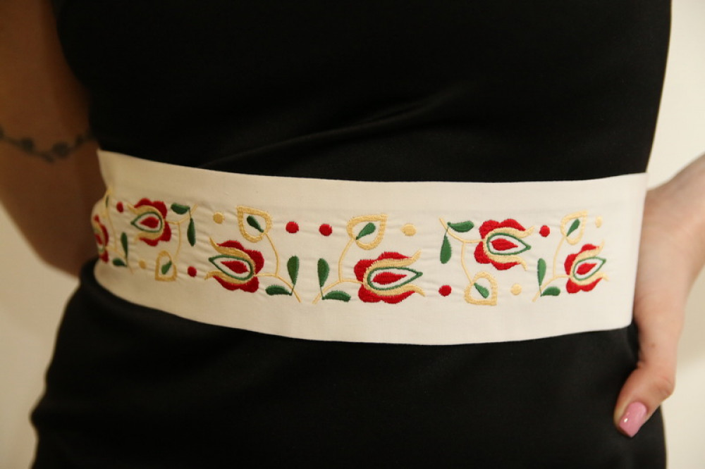 Vyšívaný opasok na viazanie mašle, doplnok, ktorý nádherne oživí všedný kúsok a dodá mu jedinečnosť. Vhodný do spoločnosti, na podujatia či akcie. Pôsobí elegantne. Krásne obopne pás a decentne zvýrazní jemné krivky.