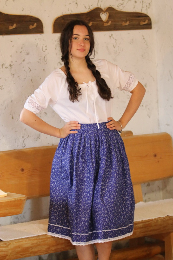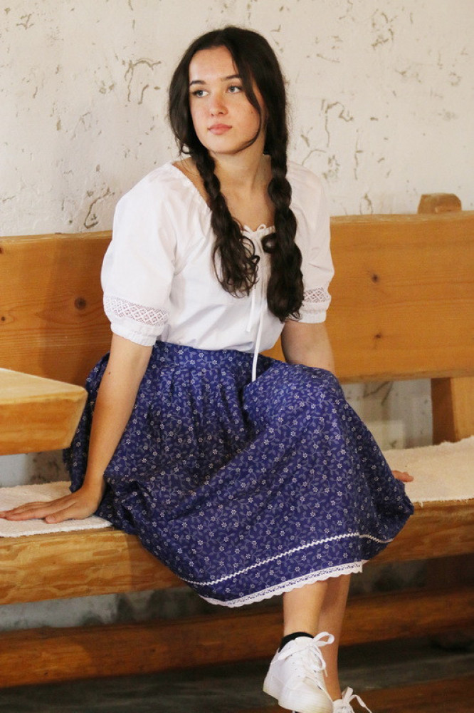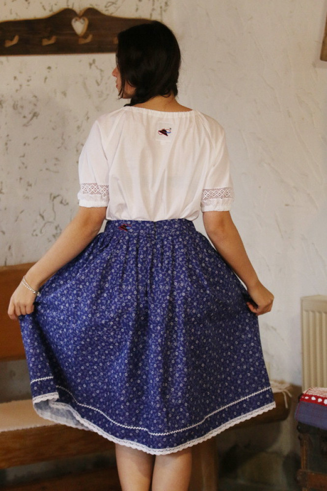 Bavlnená ľudová sukňa lemovaná háčkovanou krajkou so zapínaním vzadu na zips. Je pohodlná, voľná, priedušná, príjemná na dotyk. Je možné ju kombinovať s našimi blúzkami.