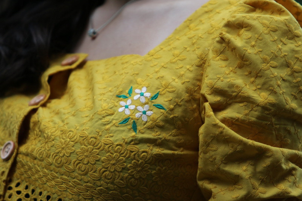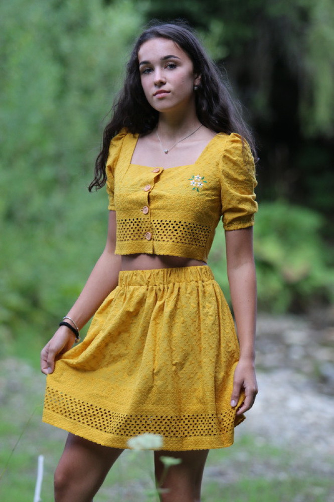 Vyšívaný madeirový crop top Krojové.sk so zapínaním na drevené gombičky s balónikovými rukávmi. Pôsobí elegantne a sviežo, je vhodný na rôzne spoločenské akcie alebo na bežné nosenie k nohaviciam či k sukni. Kvalitne vypracovaný kúsok je veľmi príjemný, pri nosení pohodlný, vzdušný a na dotyk jemný.
